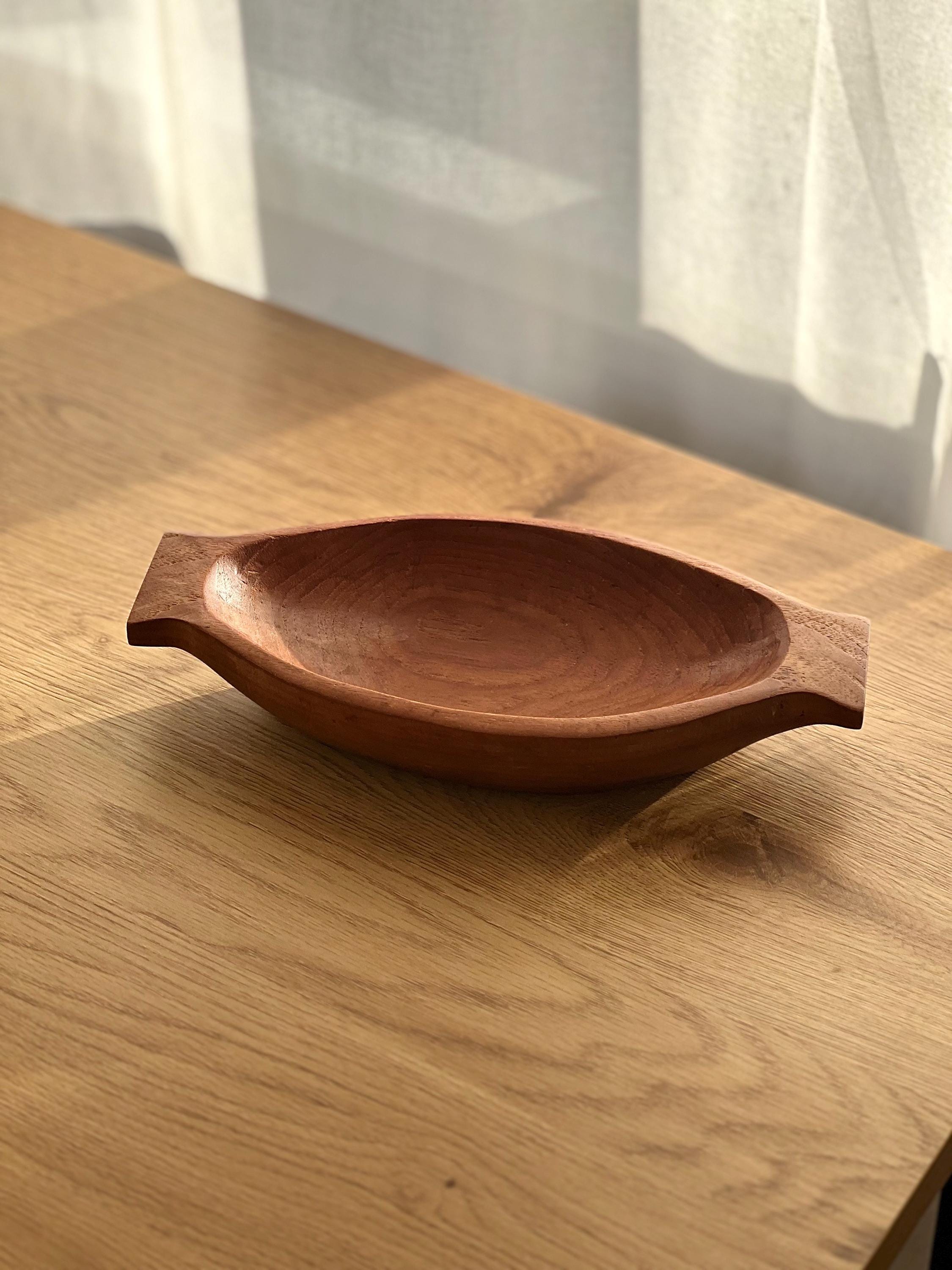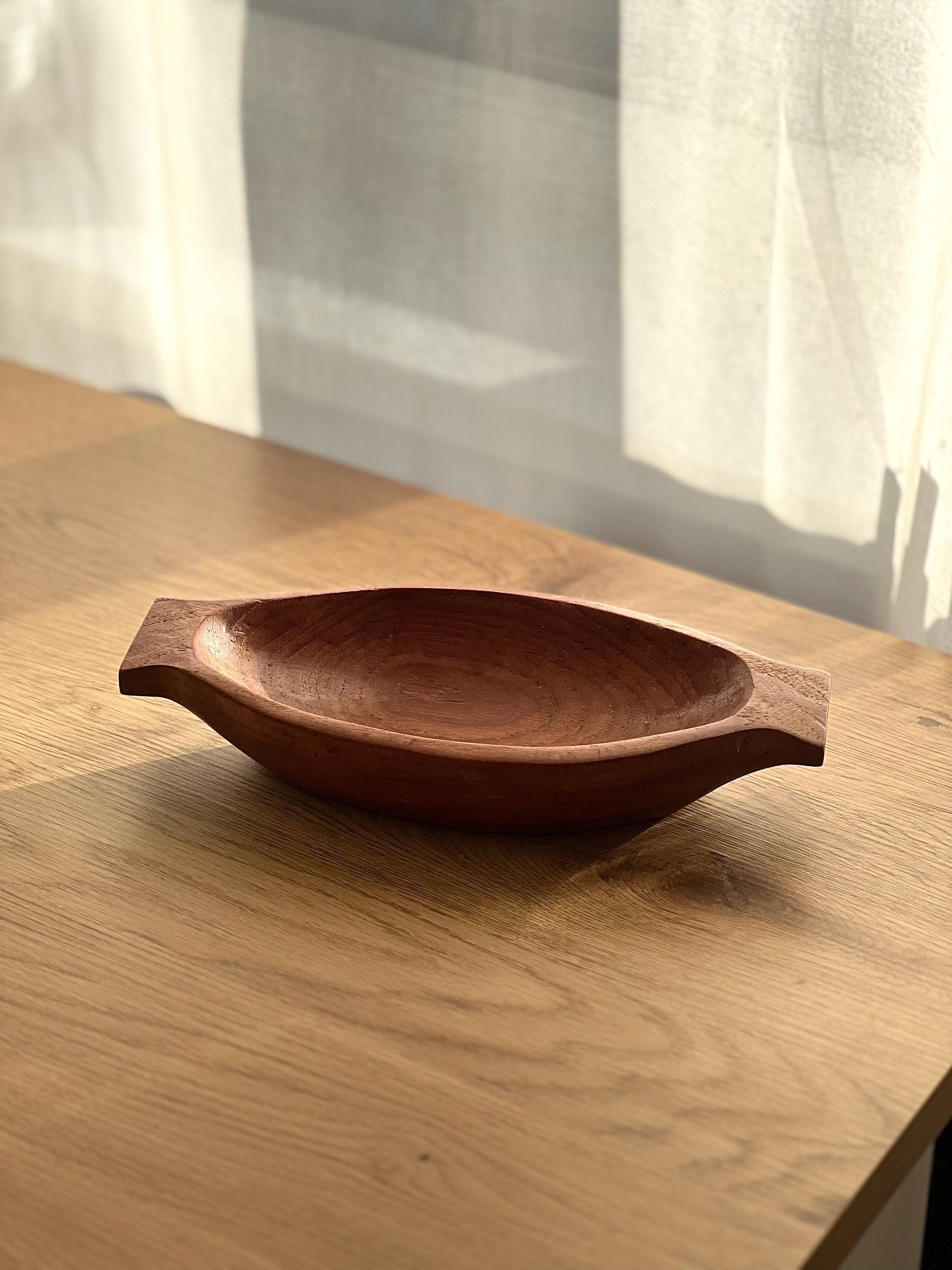 This Vintage Decorative Multifunctional Bowl is crafted from beautiful wood and carefully handcrafted. This super unique mid-century style item from the 80/90s is a true gem. Very unique home decor, which you can use in so many ways( trinket tray, bowl for keys, remotes, jewelry tray, bowl for sweets or serving bread)