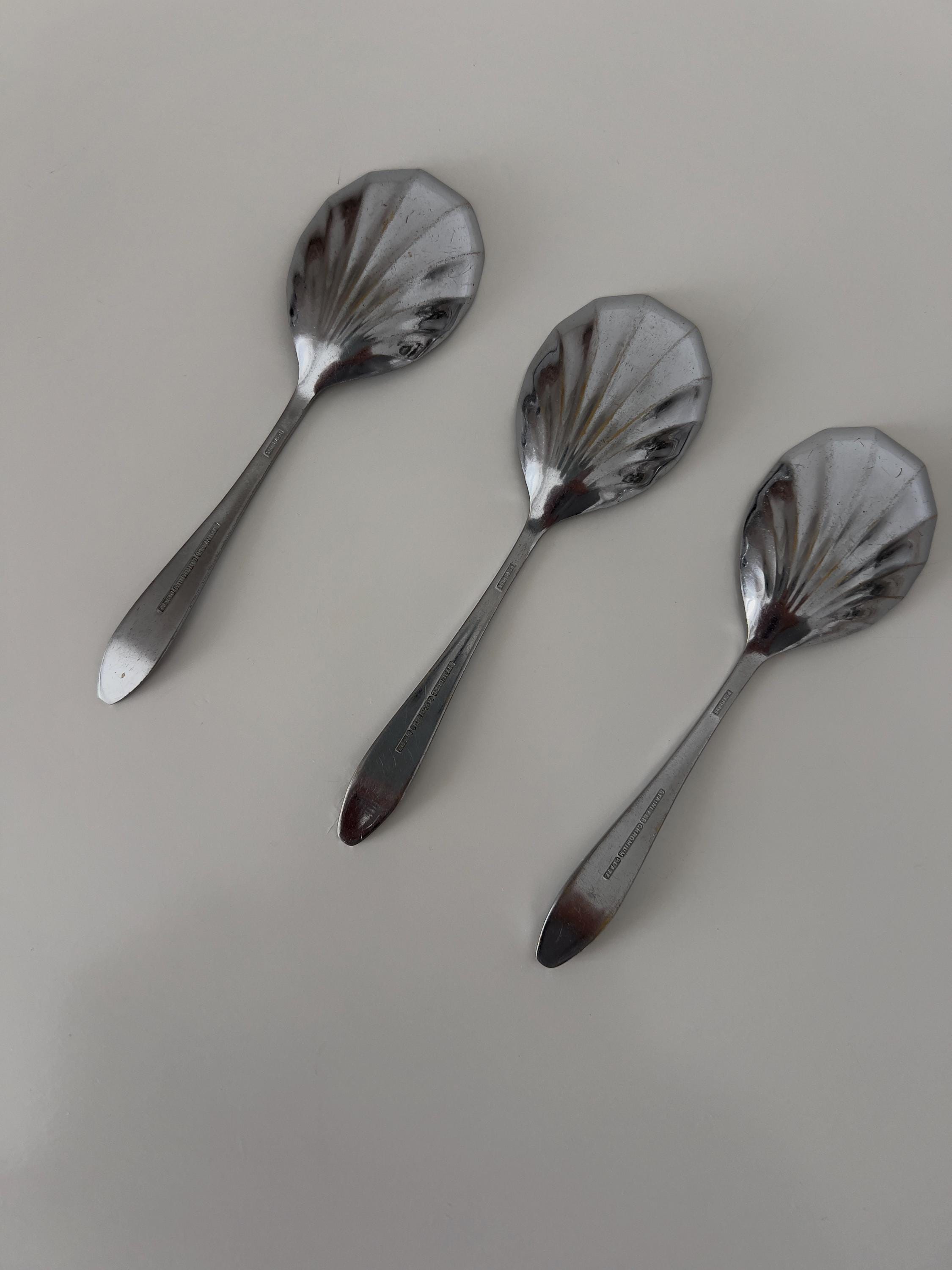 These chromium-plated spoons are a true gem of table decoration. Its shell-shaped tip evokes a classic and elegant style, perfect for adding a touch of sophistication to a table service. Whether for serving desserts, sauces, or simply as a decorative element, these spoons will bring timeless elegance to your collection-a must-have for lovers of vintage tableware and neat decoration.