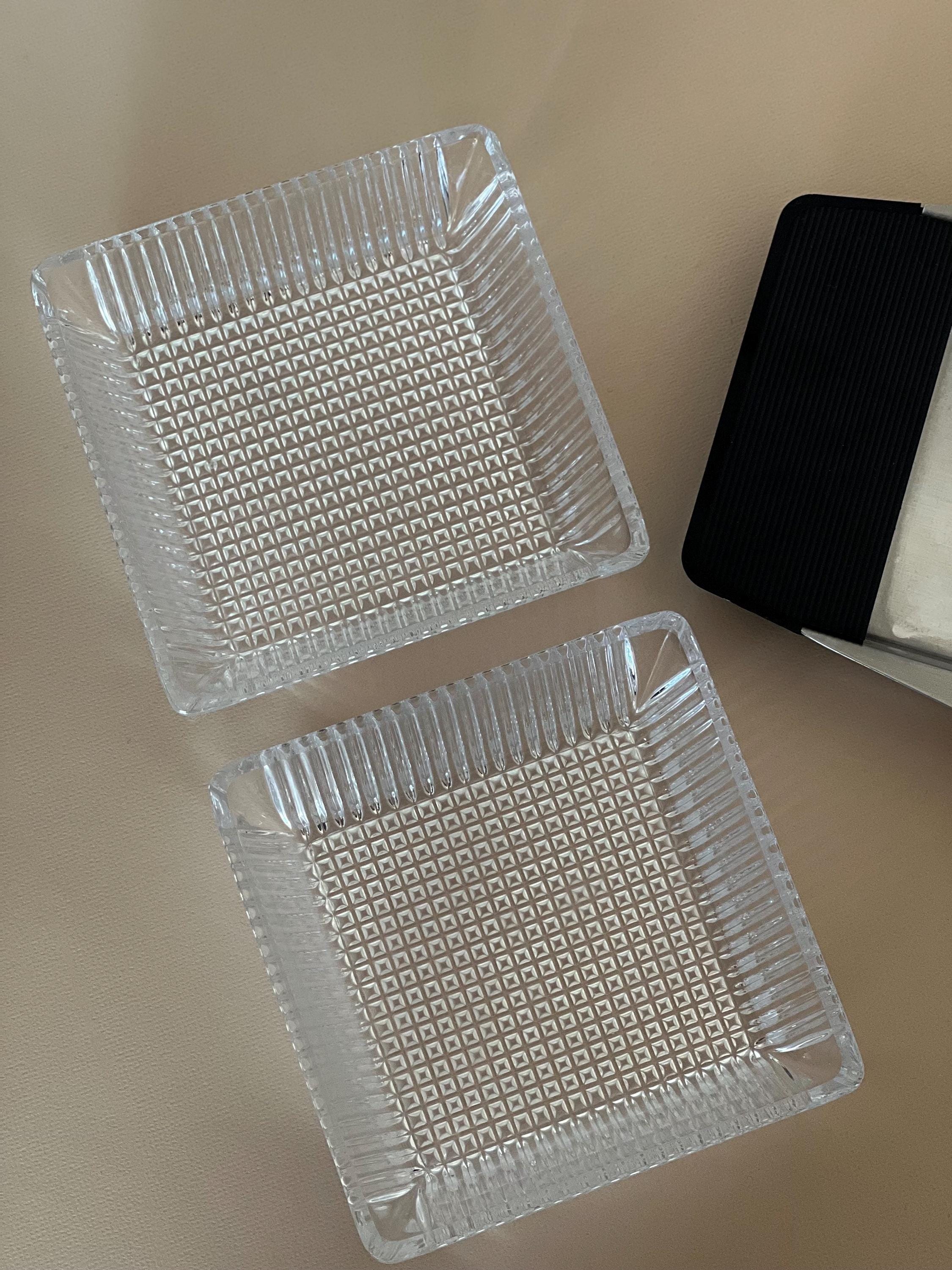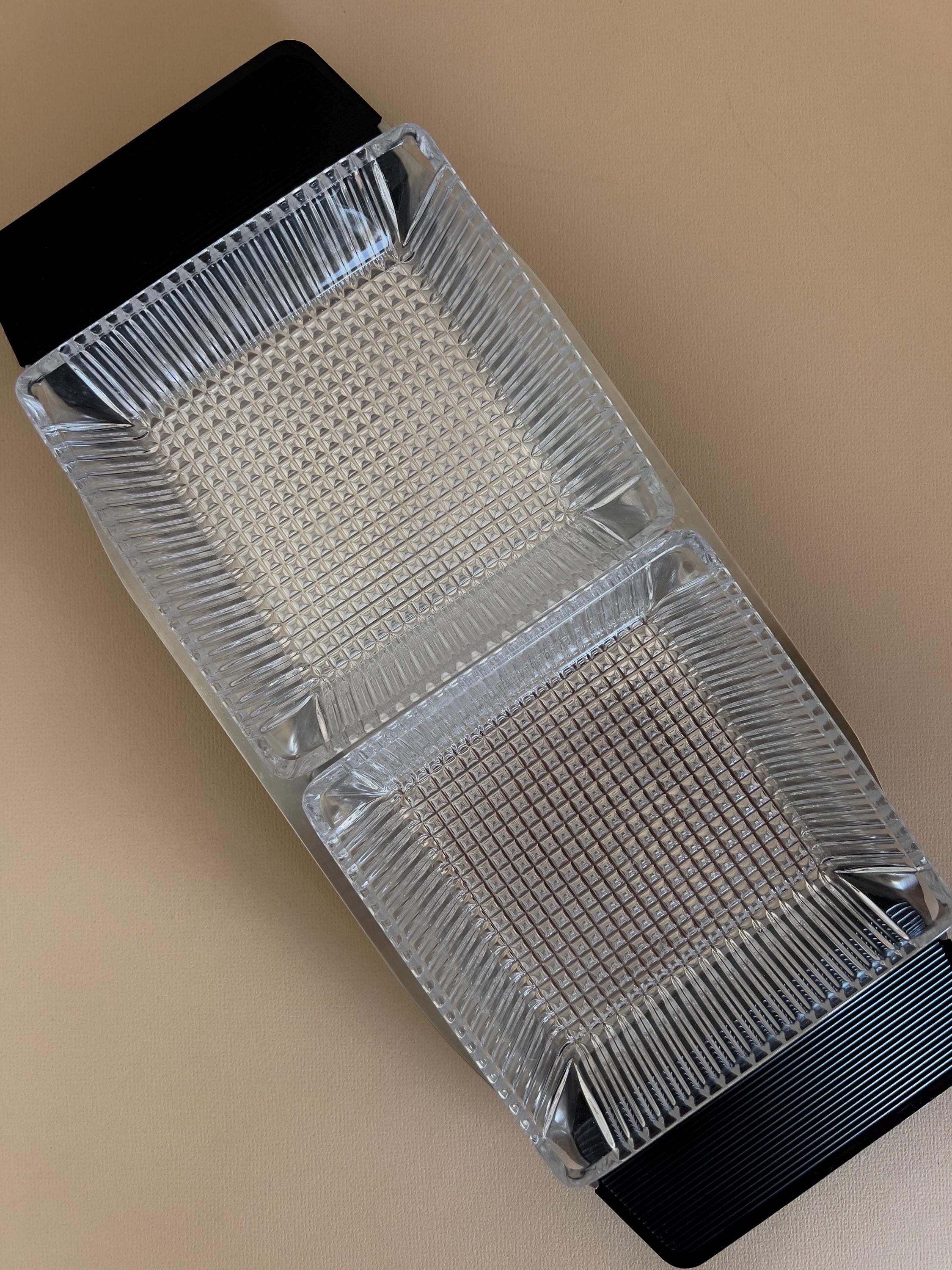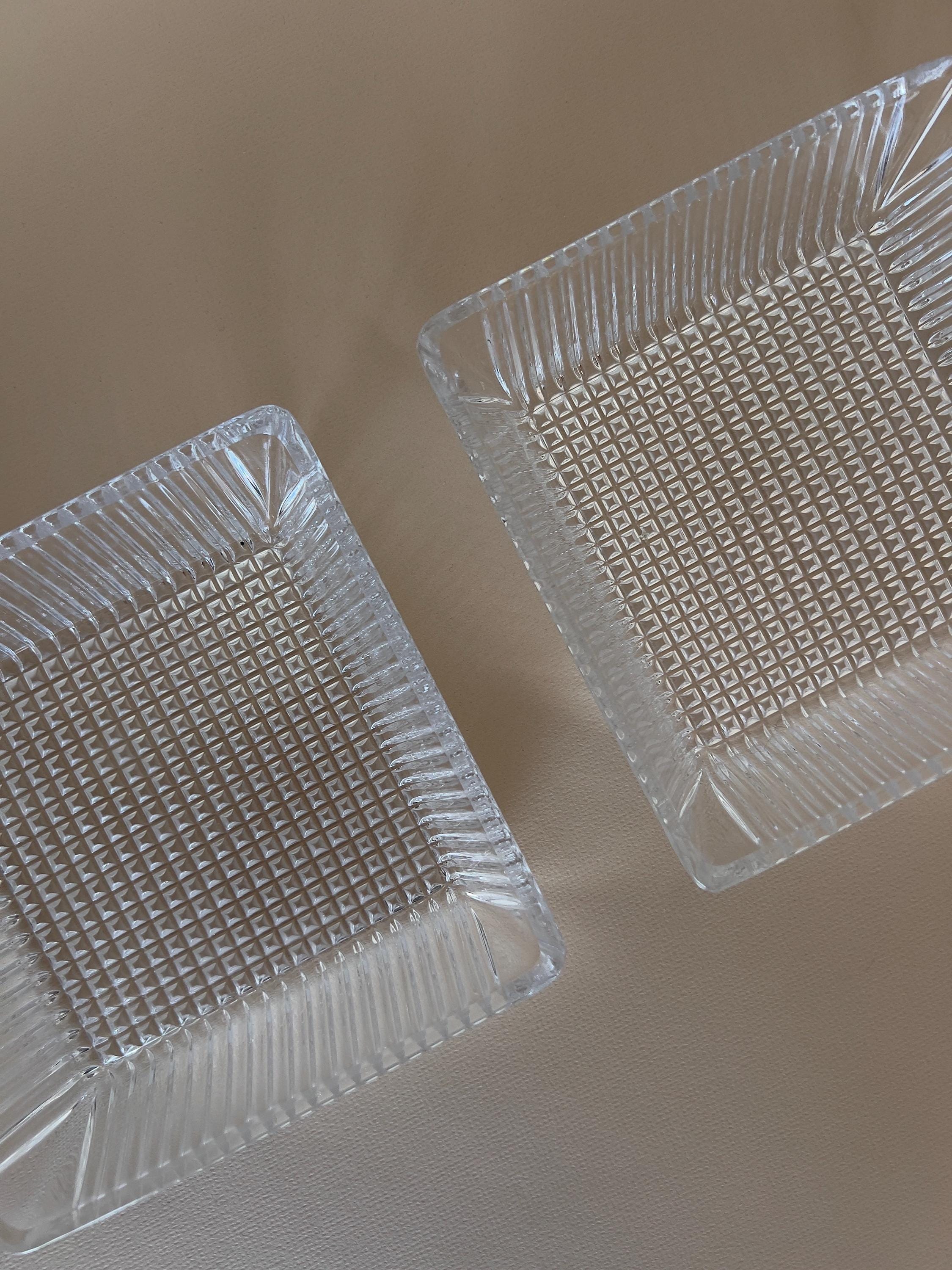 • Featuring 2 pressed glass bowls, a metal tray with grooved black plastic handles