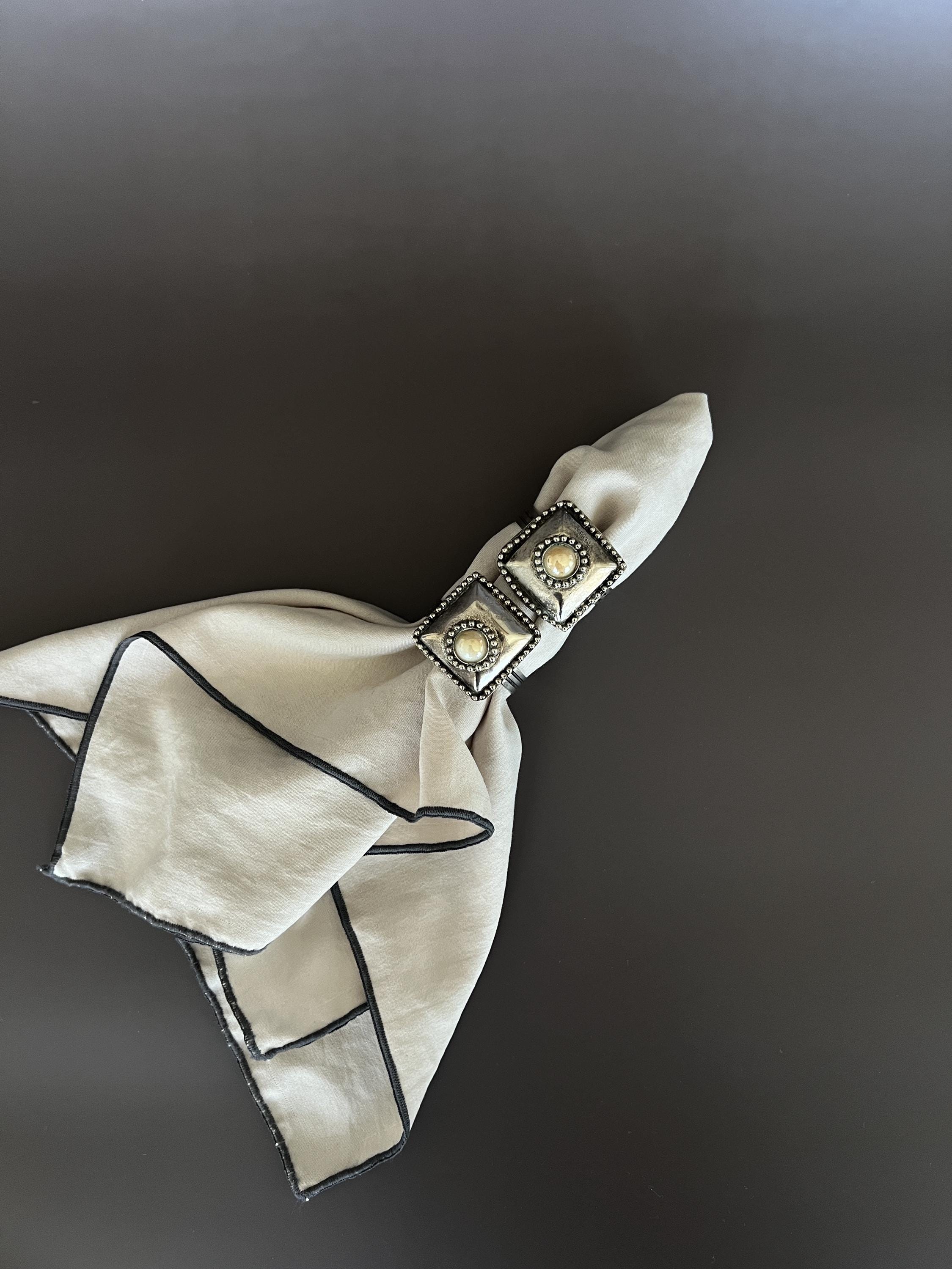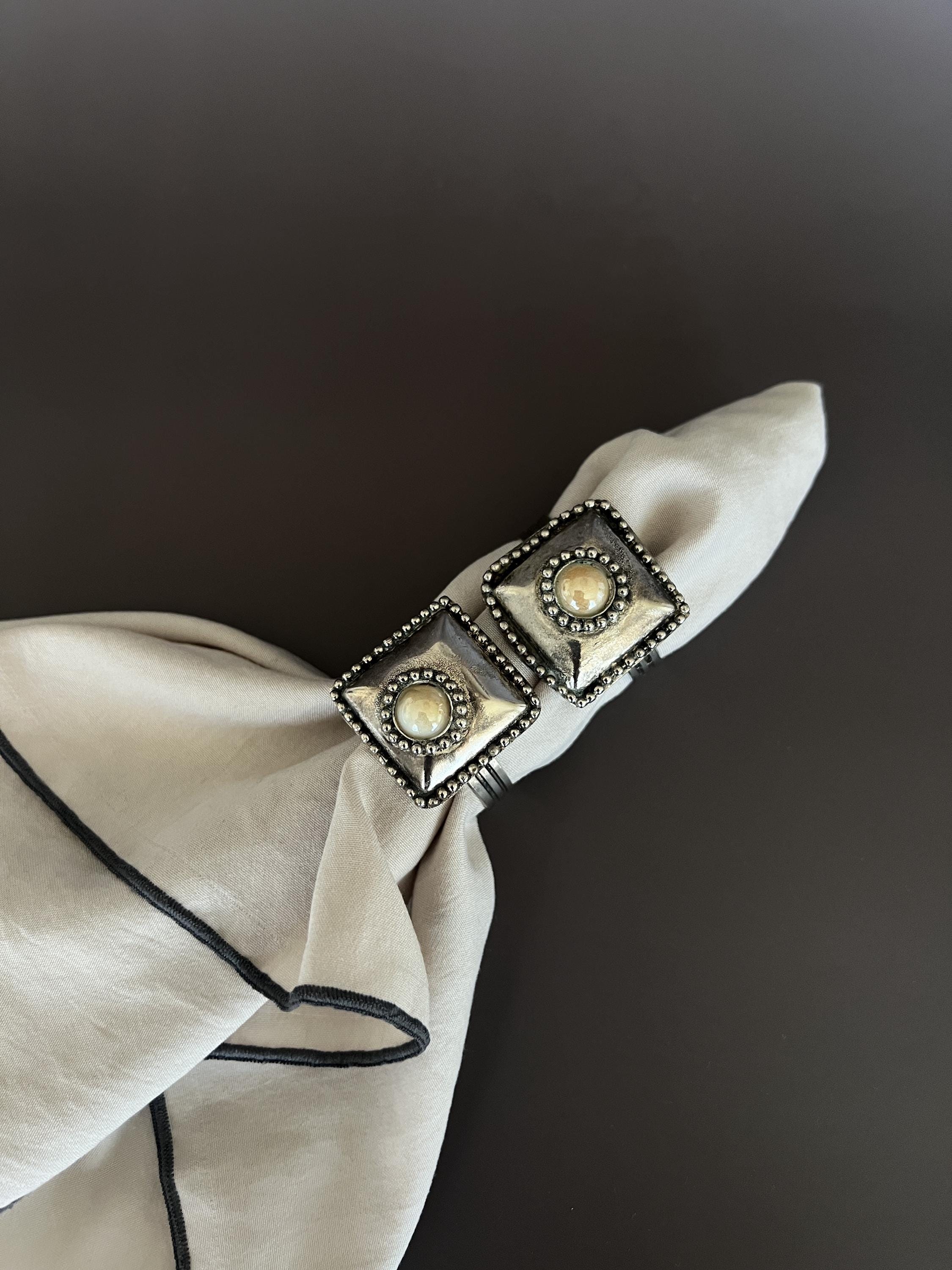 Set of 2 rare vintage silverplate square beaded rim napkin rings.