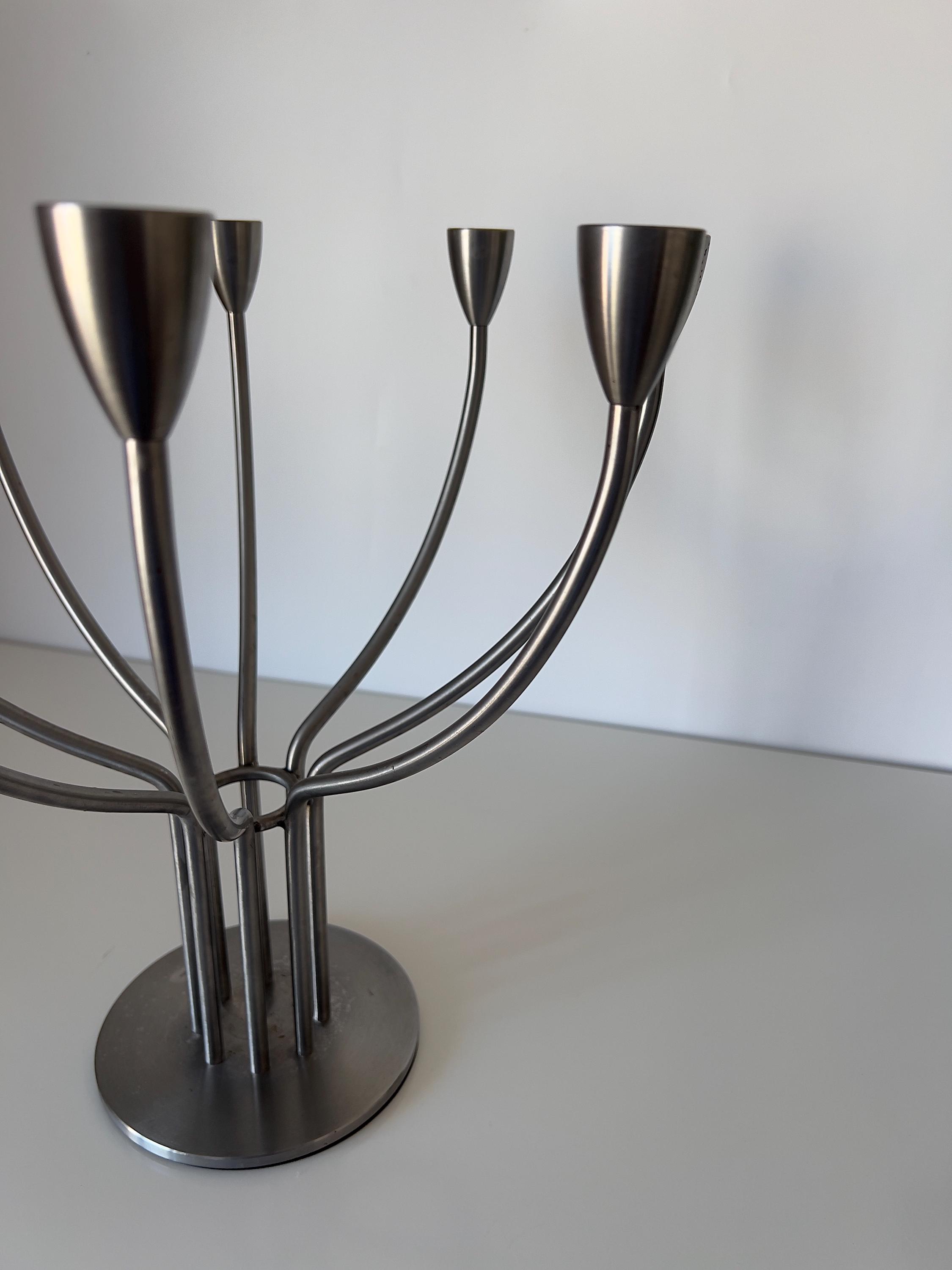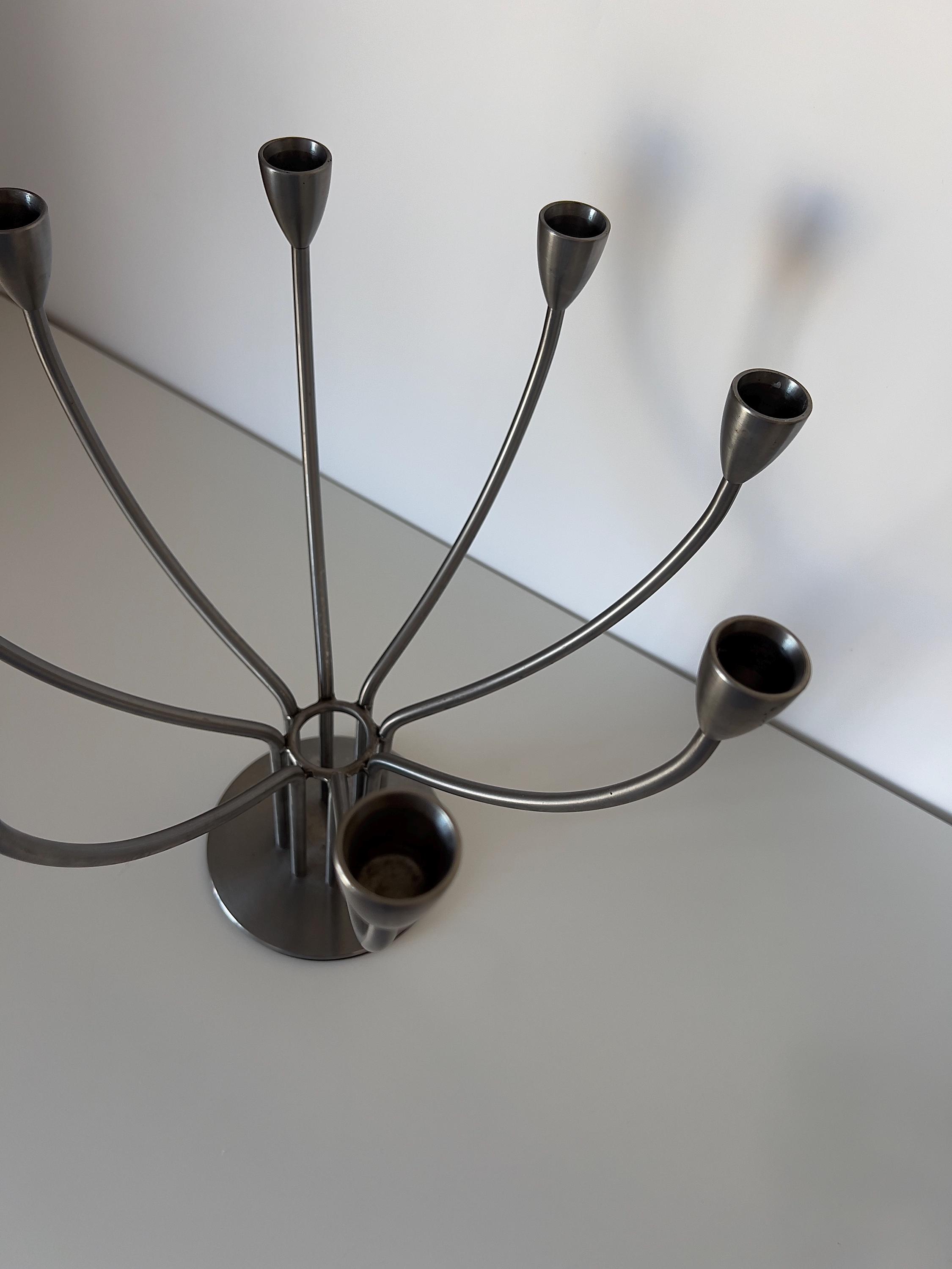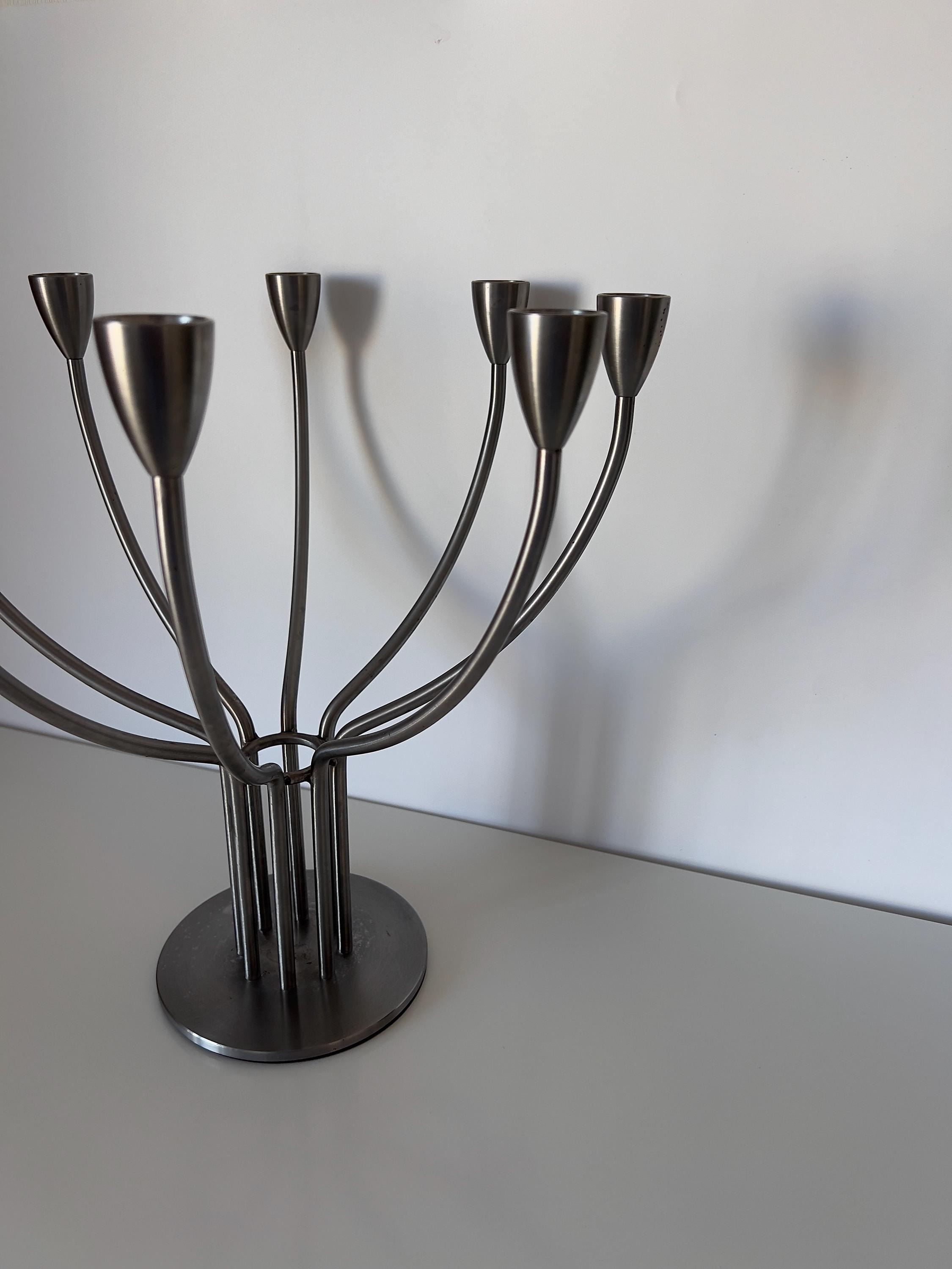 Scandinavian design big metal candle holder on 8 arm, designed by K Hagberg/M Hagberg for IKEA in 90s. Perfect large element at every event or in the living space.