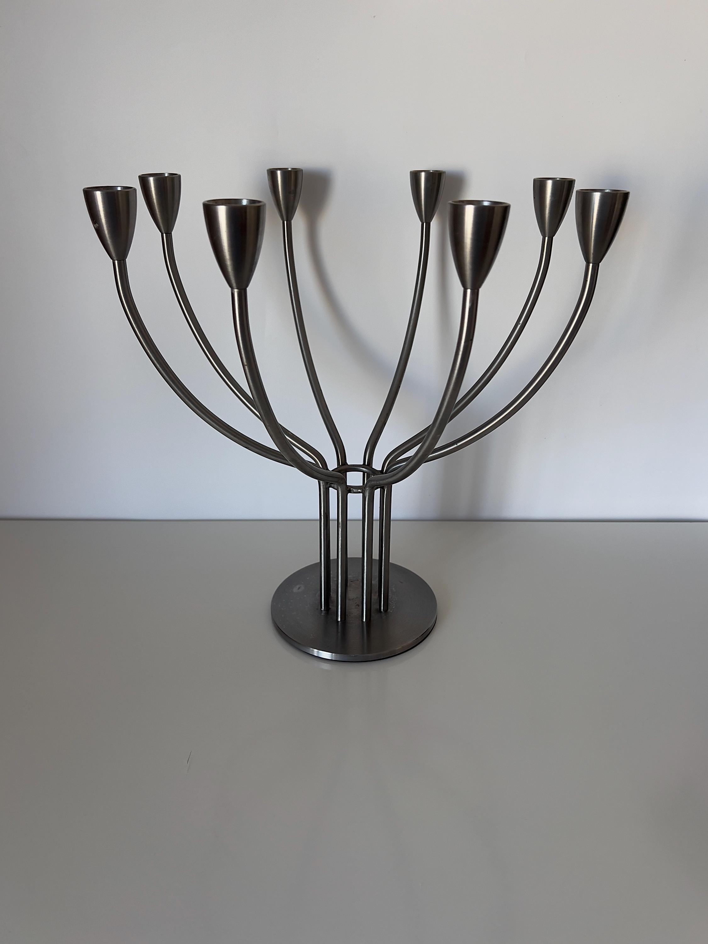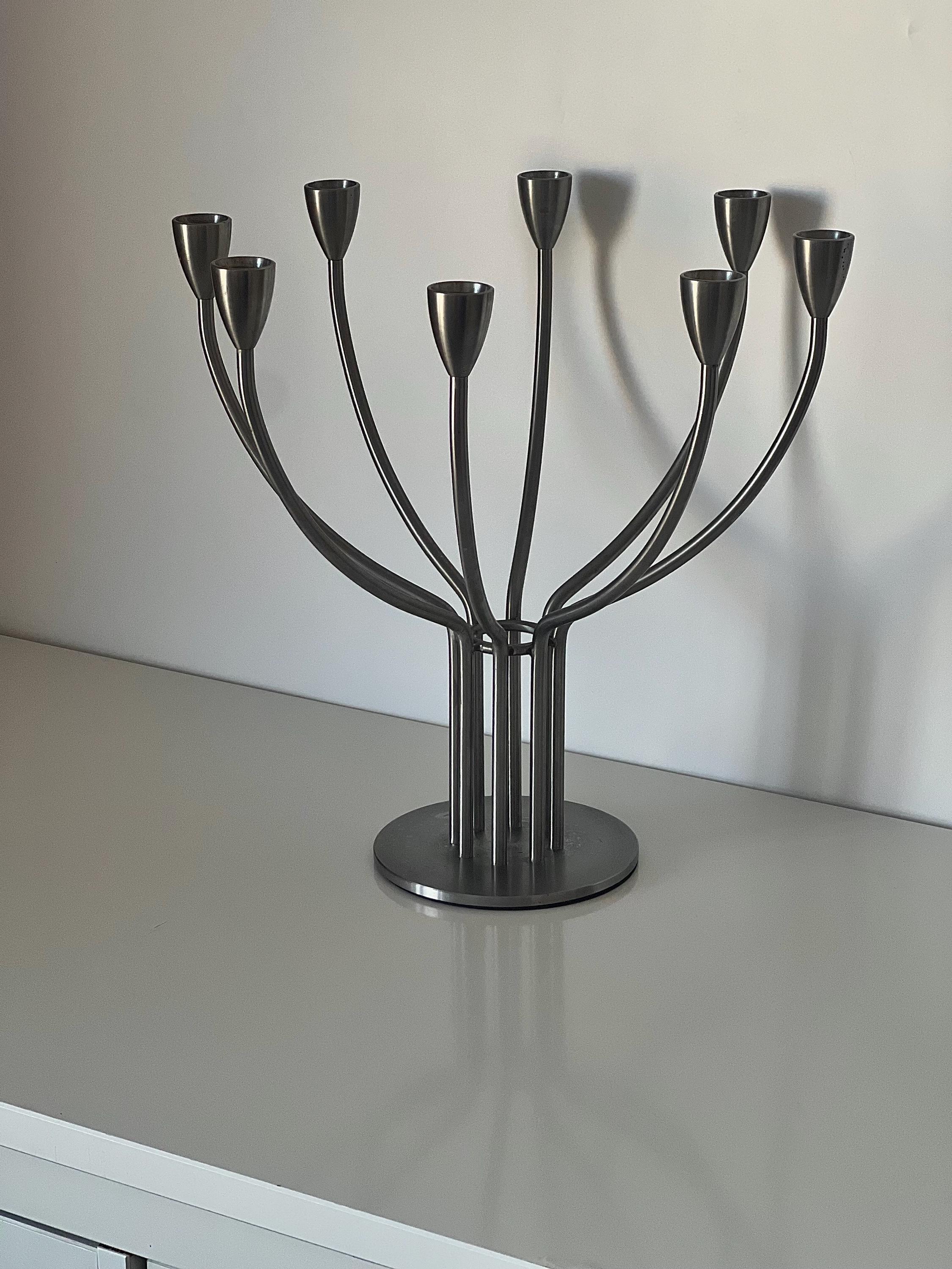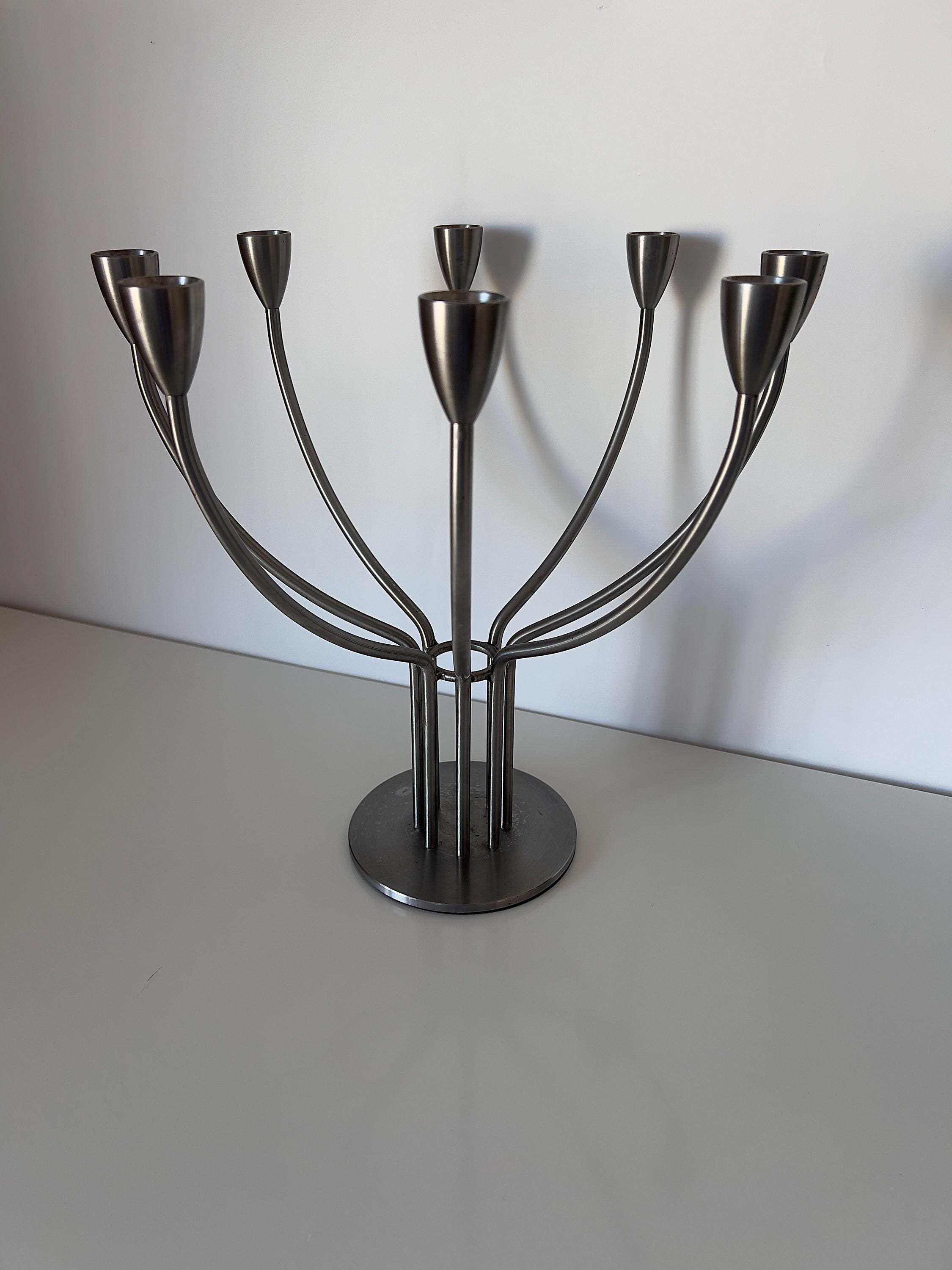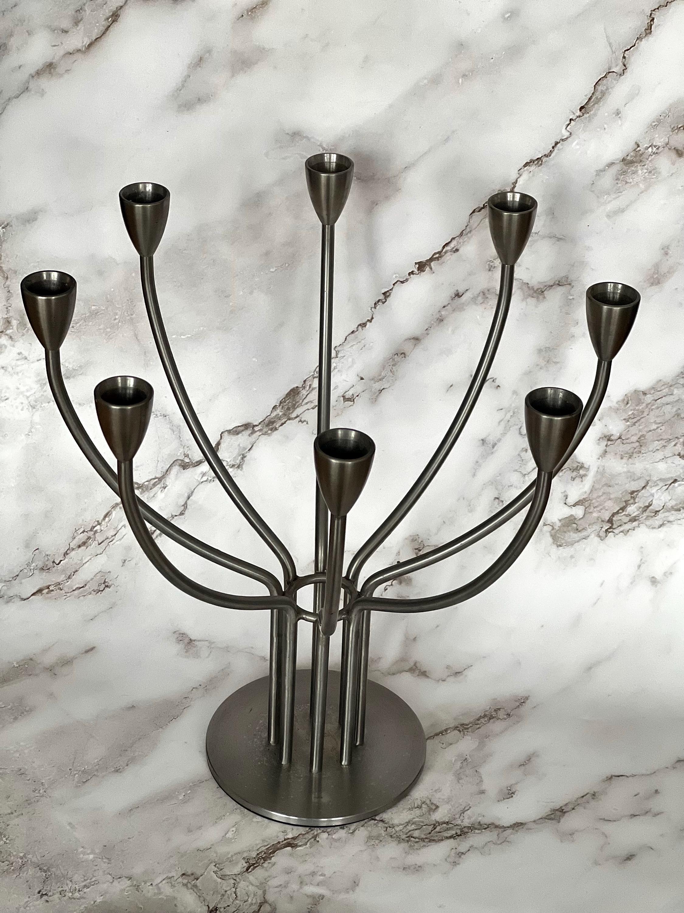 Scandinavian design big metal candle holder on 8 arm, designed by K Hagberg/M Hagberg for IKEA in 90s. Perfect large element at every event or in the living space.