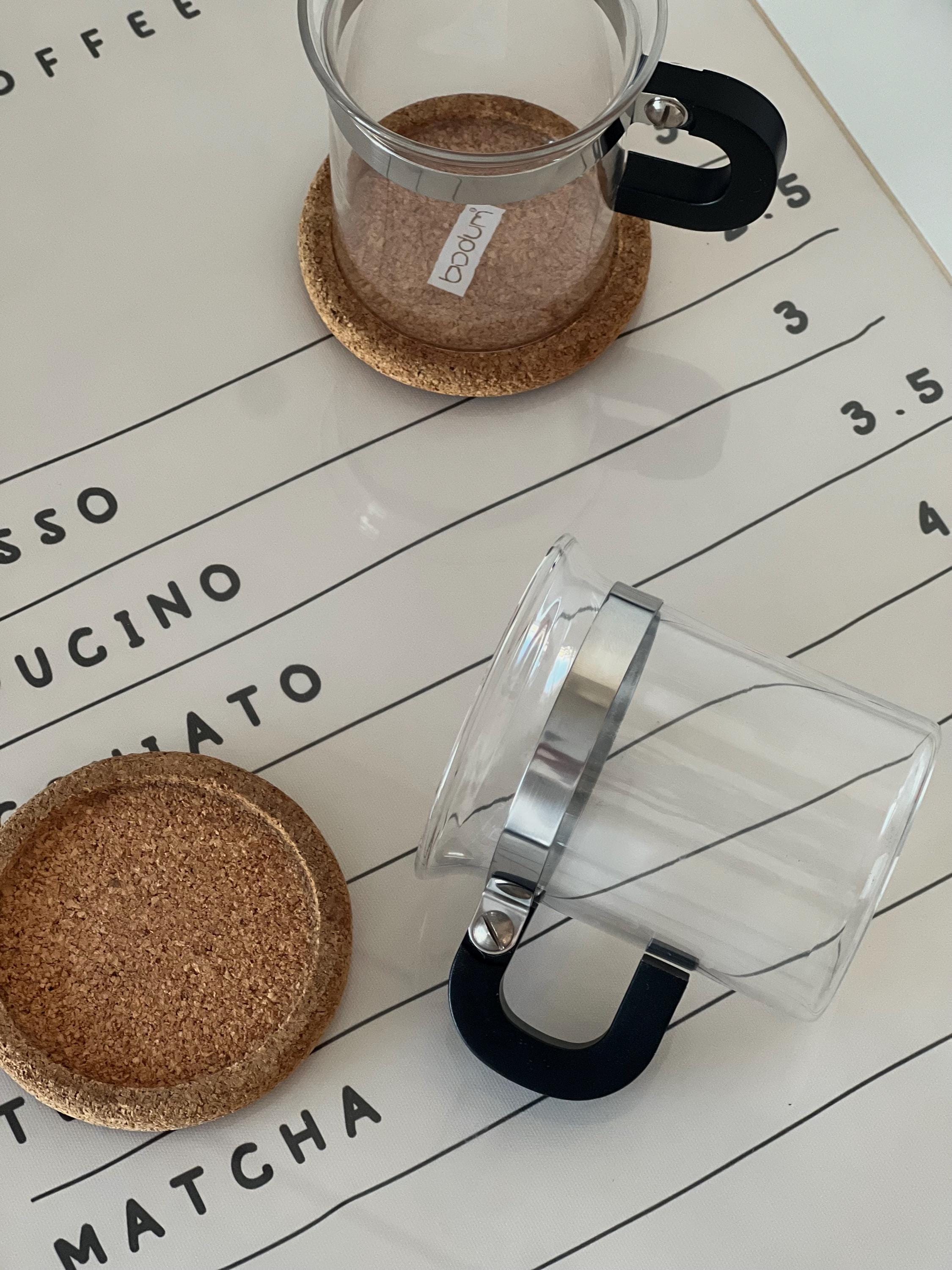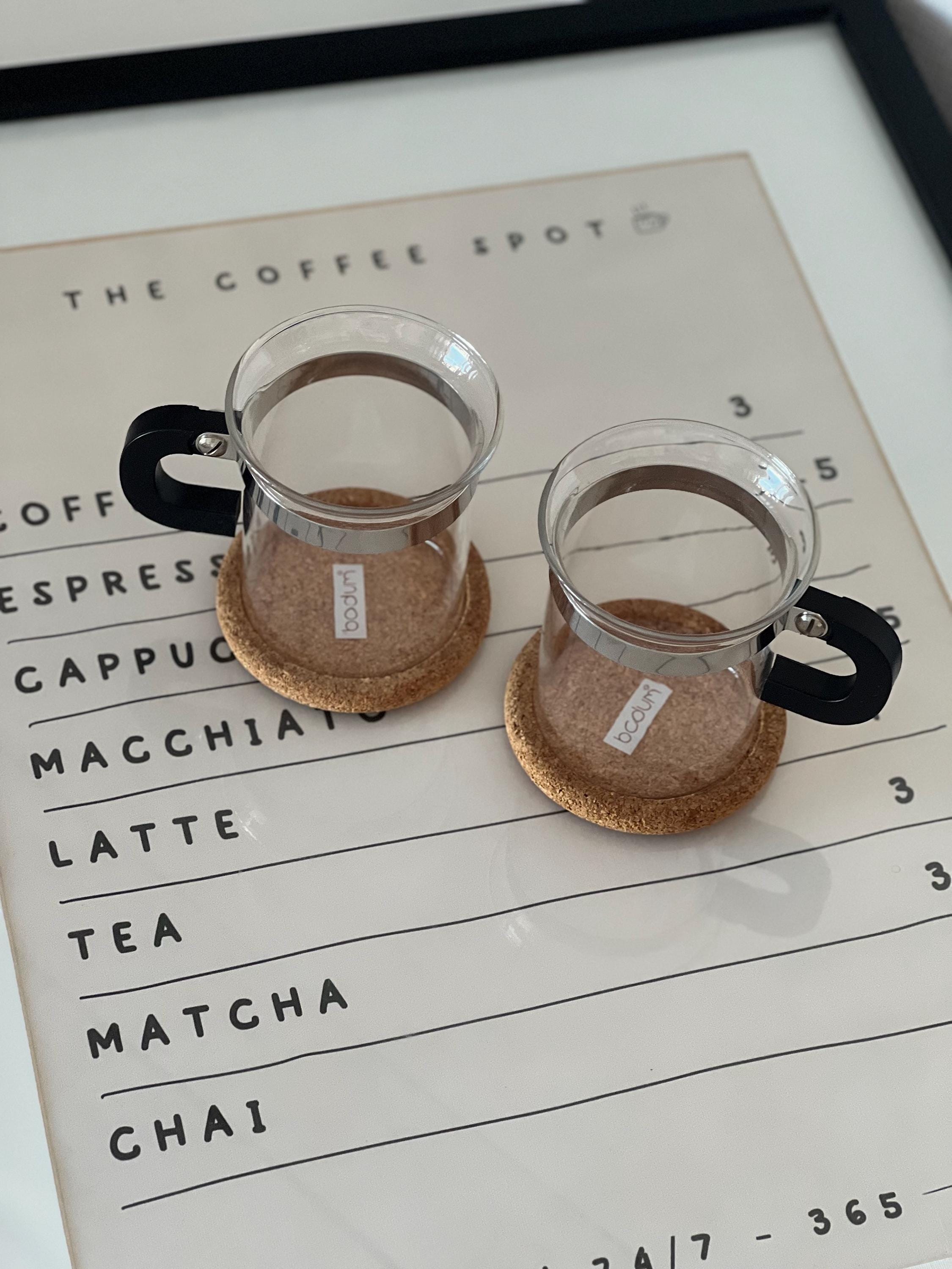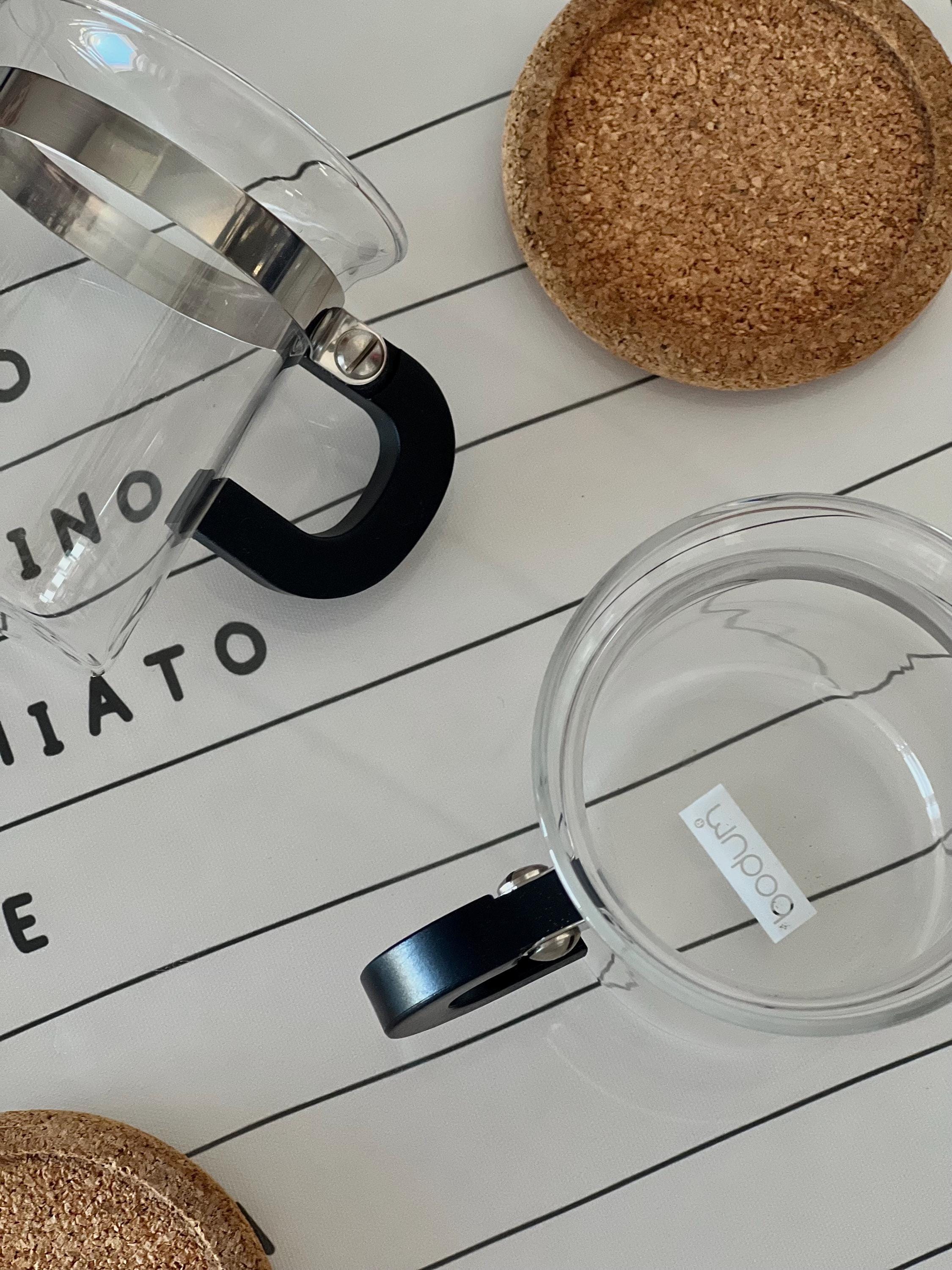 The Chambord line, introduced in the 1950s, is one of Bodum's most iconic collections. These glasses are characterized by their heat-resistant borosilicate glass, stainless steel frames, and distinctive black handles. Often paired with cork coasters, they are designed for serving hot beverages like coffee or tea, offering a comfortable grip and a stylish presentation.