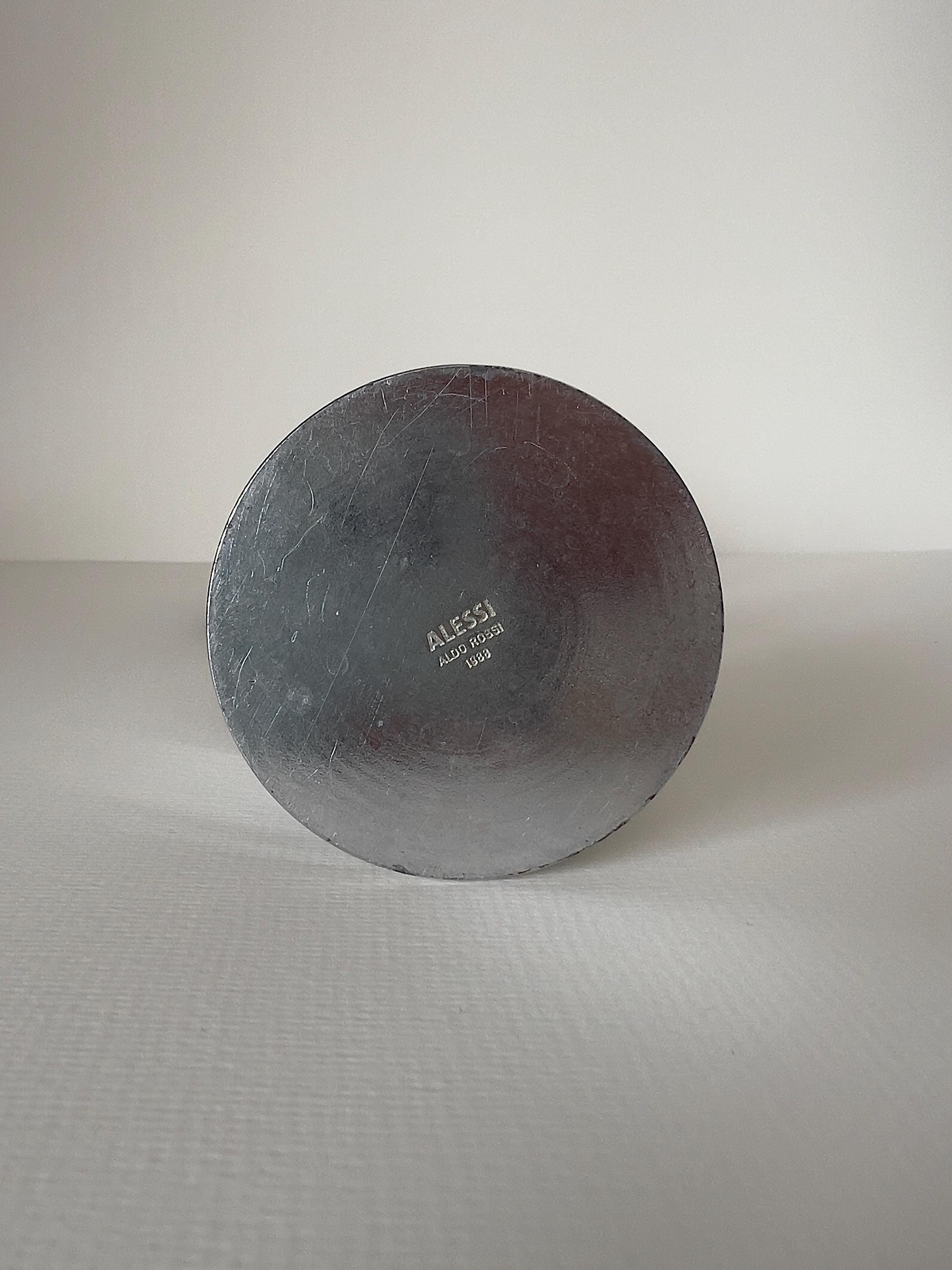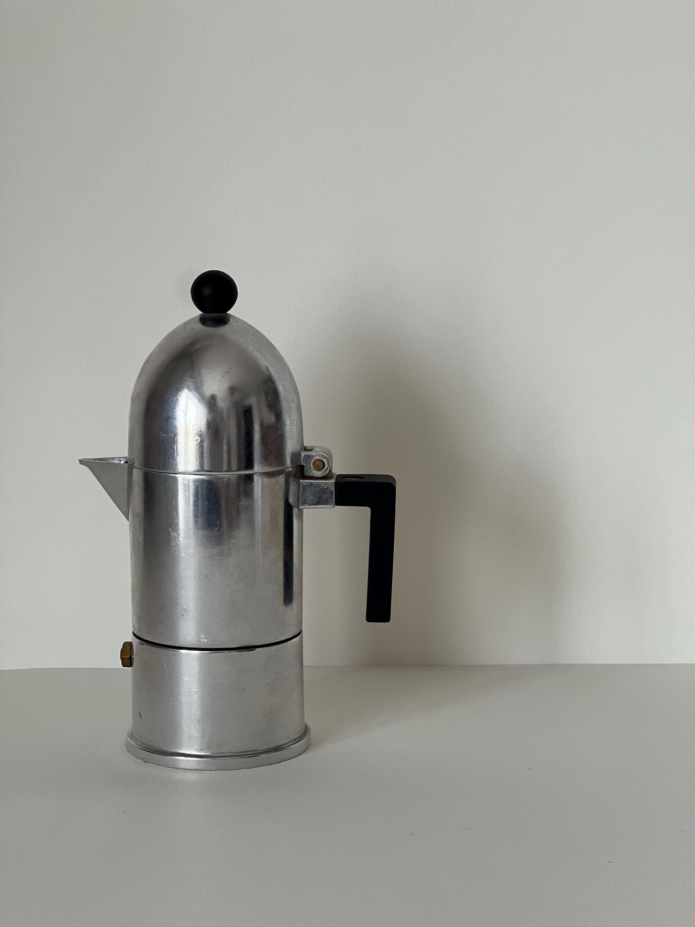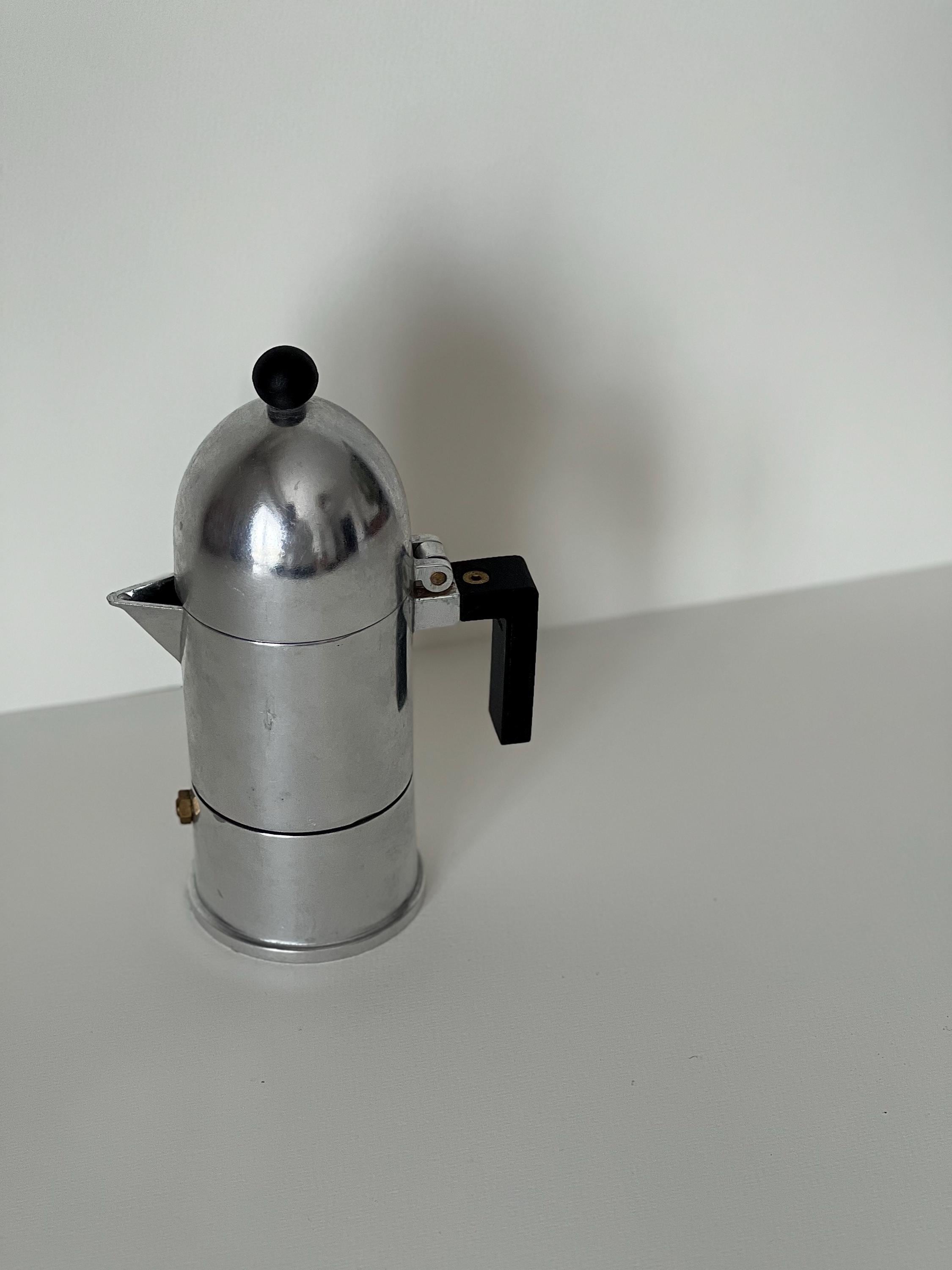 Crafted in Italy and stamped Alessi / Aldo Rossi 1988 on the base, this vintage designer coffee maker is both a luxury kitchen statement and a display-worthy object for open shelving or curated coffee corners.