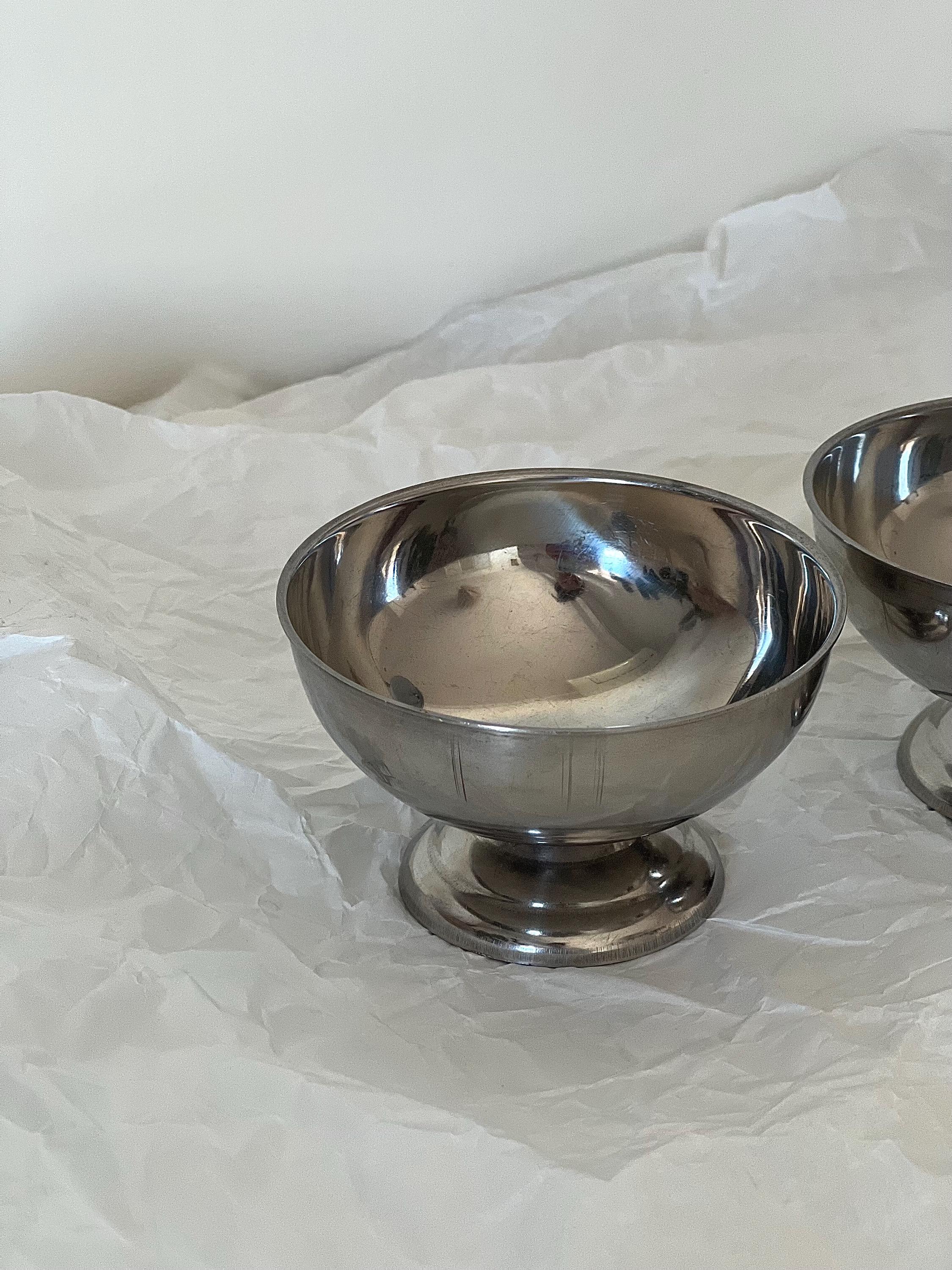 Originally made as ice cream cups, they are perfect for serving gelato, sorbet, pudding, yogurt, fruit, or small desserts. Their durable stainless steel construction also makes them practical for everyday use while adding a subtle vintage touch to the table.